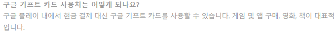 구글 기프트 카드는구글 플레이스토어 및 다양한 어플에서 사용 가능합니다.