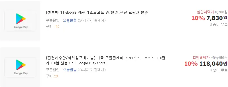 구글 플레이 스토어 및 오프라인 매장에서 기프트카드를 정가 주고 구매할 수도 있지만,