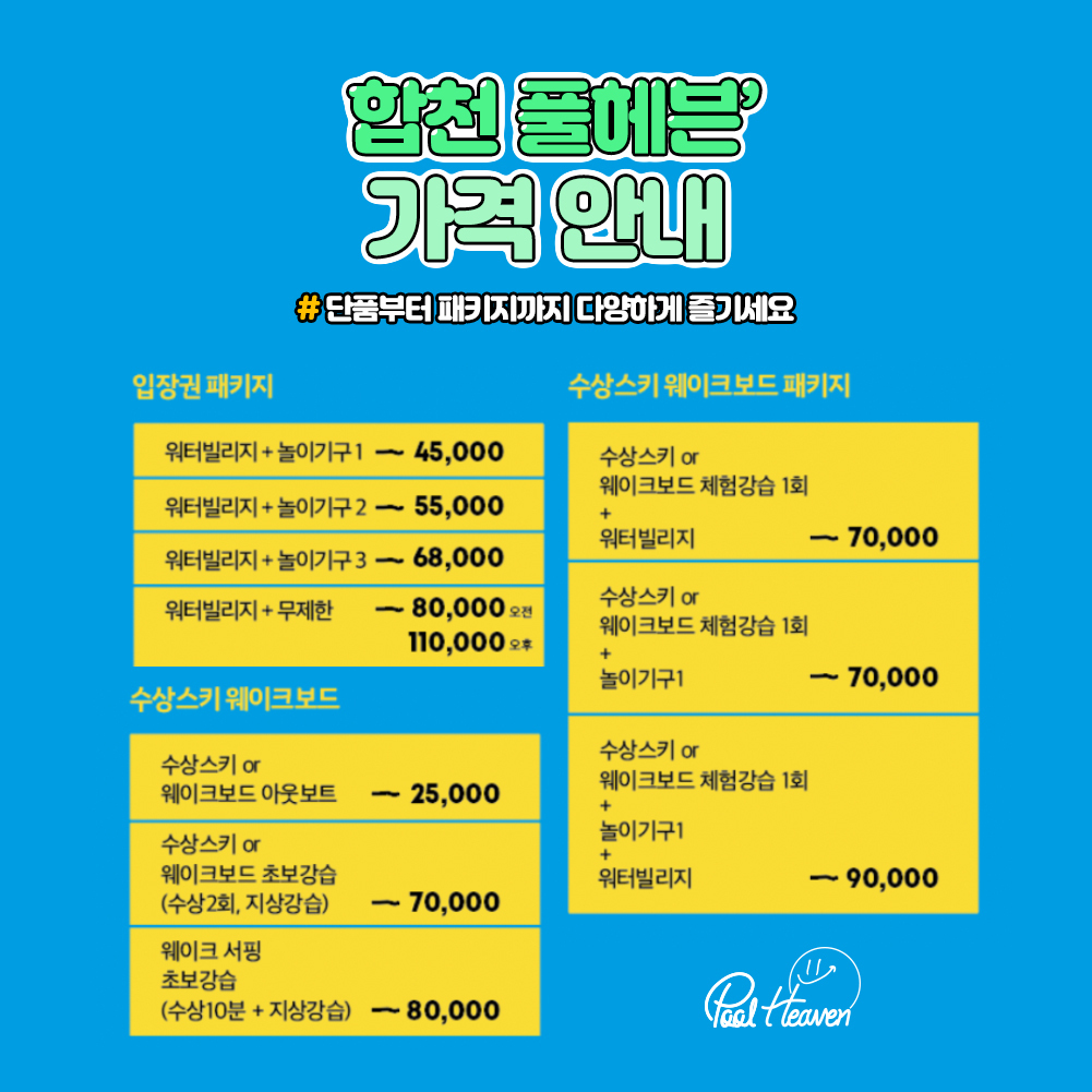 - 이곳은 깨끗하게 잘 정비되어 있는 합천에 위치한 빠지입니다. 가평보다는 여유롭게 빠지를 즐겨보고 싶다면 이곳을 고려해보세요. 규모가 큰 워터 빌리지와 없는 것 없는 놀이기구들이 있습니다.