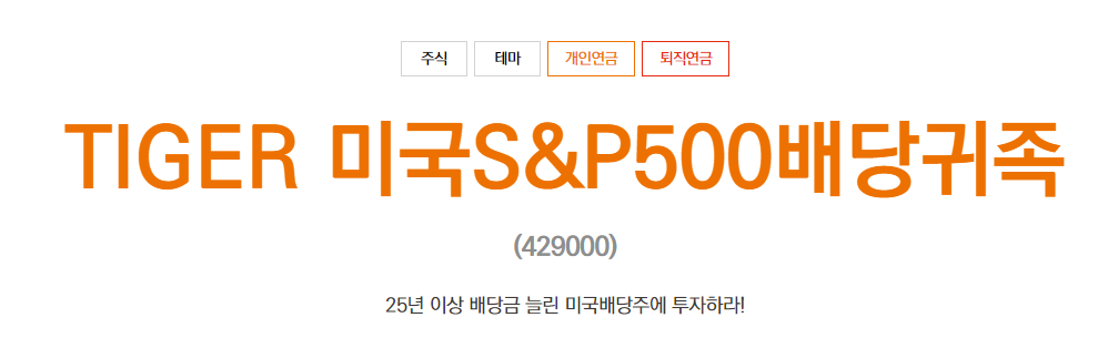 4. (한국 상장 ETF) TIGER 미국 S&P500 배당 귀족 (A429000)
