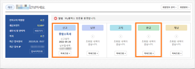 환급일과 환급금을 확인하기 위해서는 홈텍스에서 로그인을 해야 합니다.