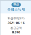 즉 종합소득세 환급일은 6월 20일 전후고, 지방세 환급은 7월 15일 전후라고 생각하시면 됩니다.