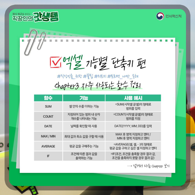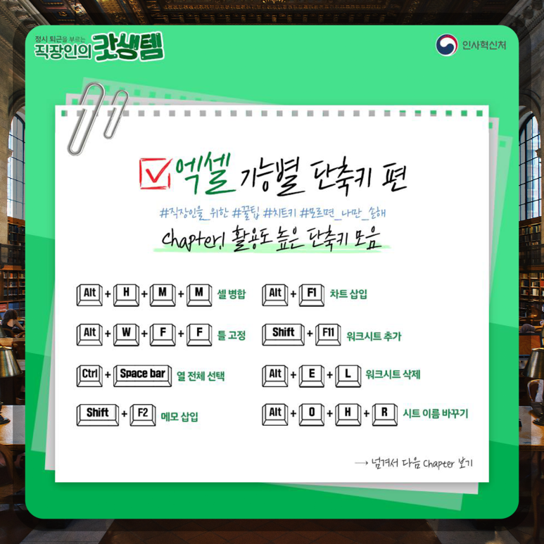 인사혁신처에서 공유한 활용도 높은 엑셀 단축키 모음을 공유합니다.