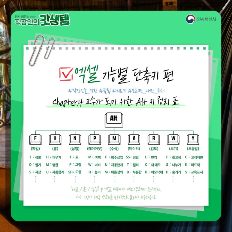 엑셀 단축키 모음 _ 직작인의 갓생템(fea. 인사혁신처)