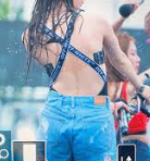 상의는 수영복을 입고 하의는 청바지를 입는 복장도 많습니다.