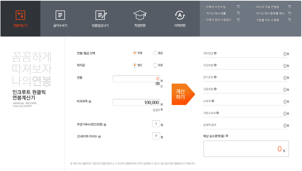 월급 세금 계산기