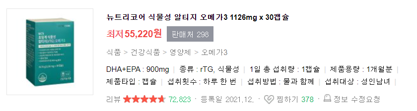 화학 용제를 사용하지 않는 식물성 rtg 오메가 3를 선별하였으니 꼼꼼히 따져보고 골라보세요.